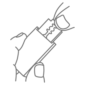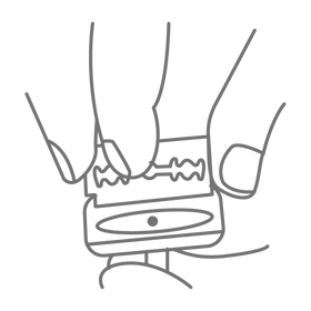Unwrap a fresh blade from its wrapper and hold it by its short blunt sides. Simply place the blade into the butterfly enclosure and twist the knob to the right to secure the blade and close the doors.